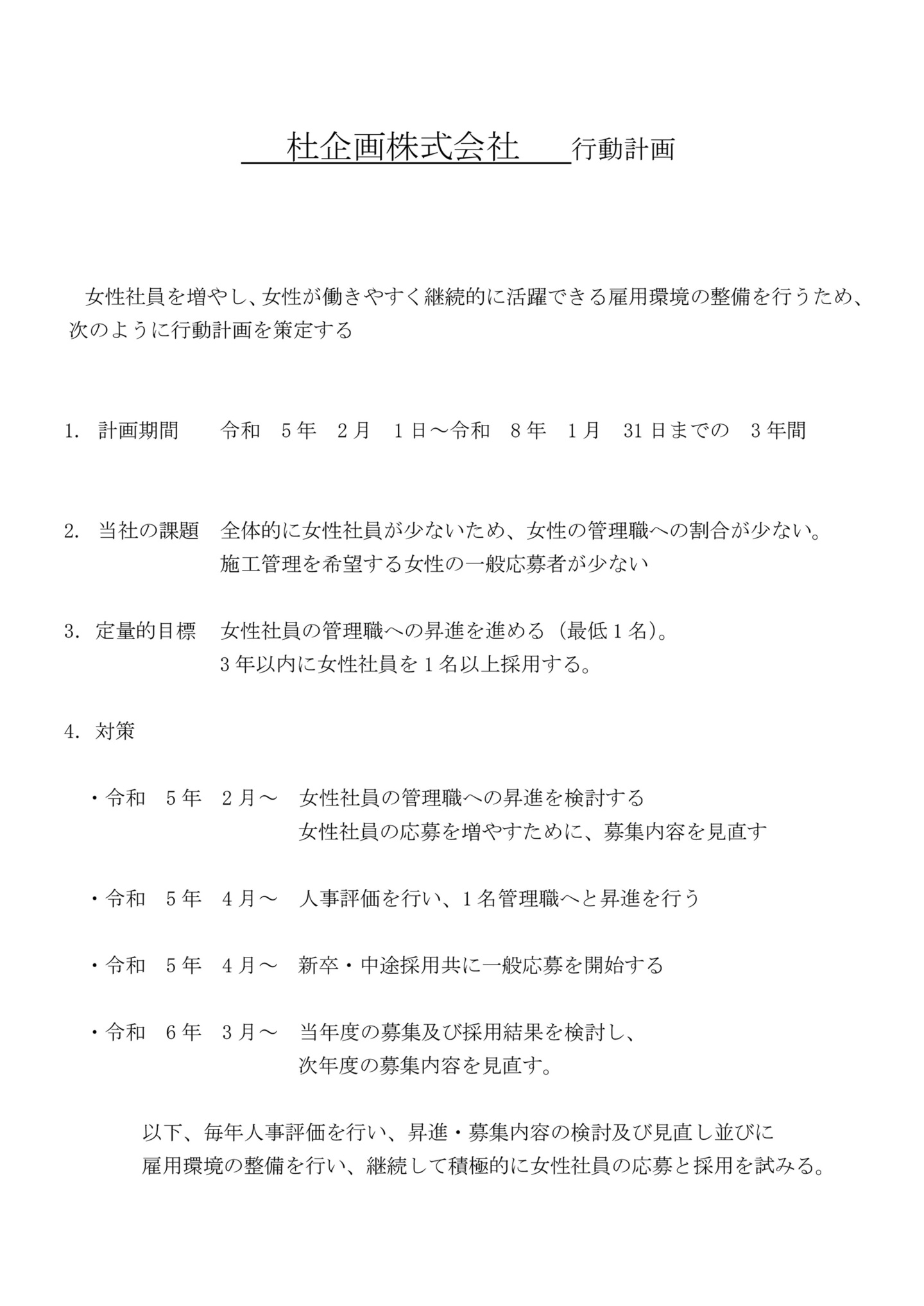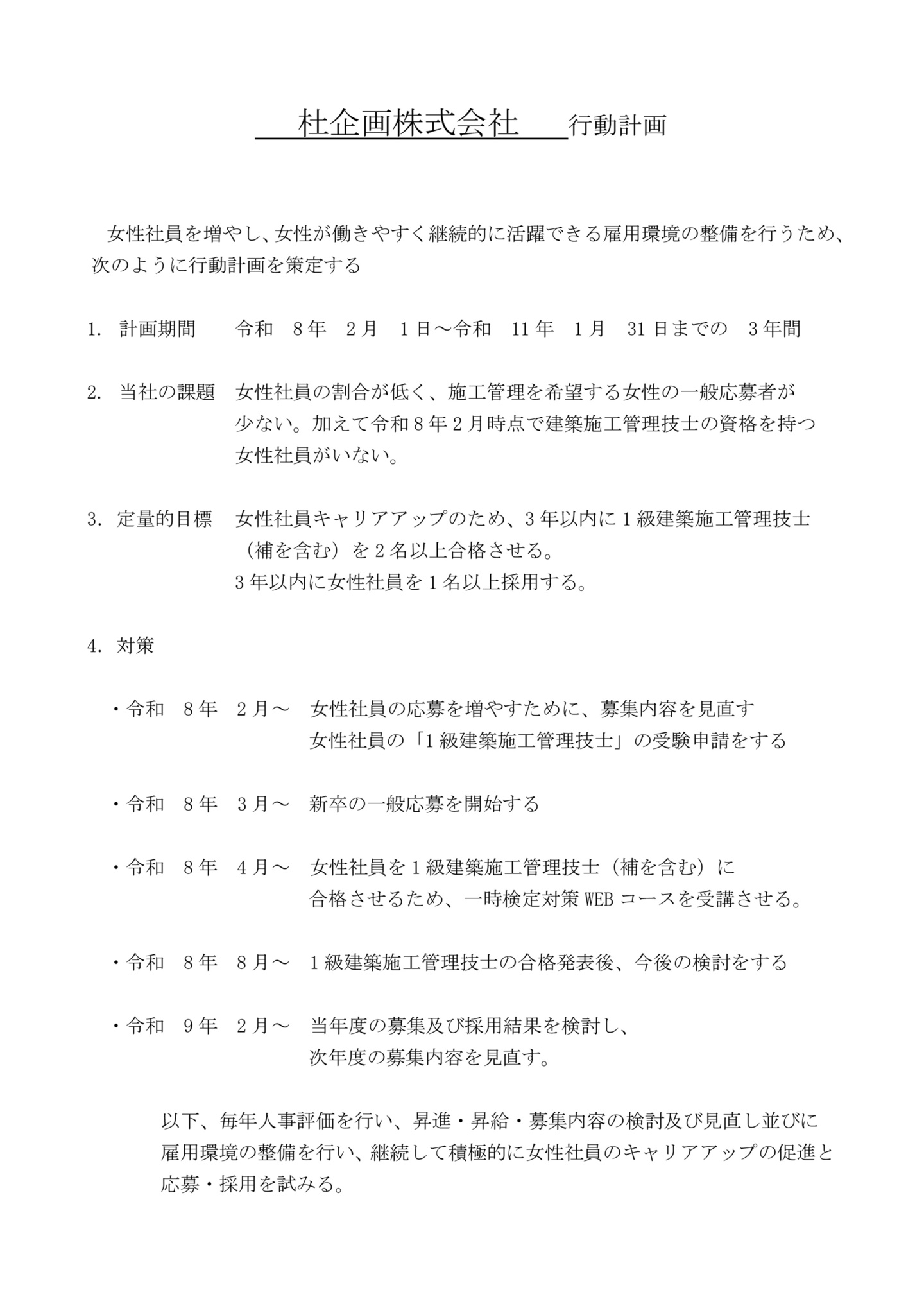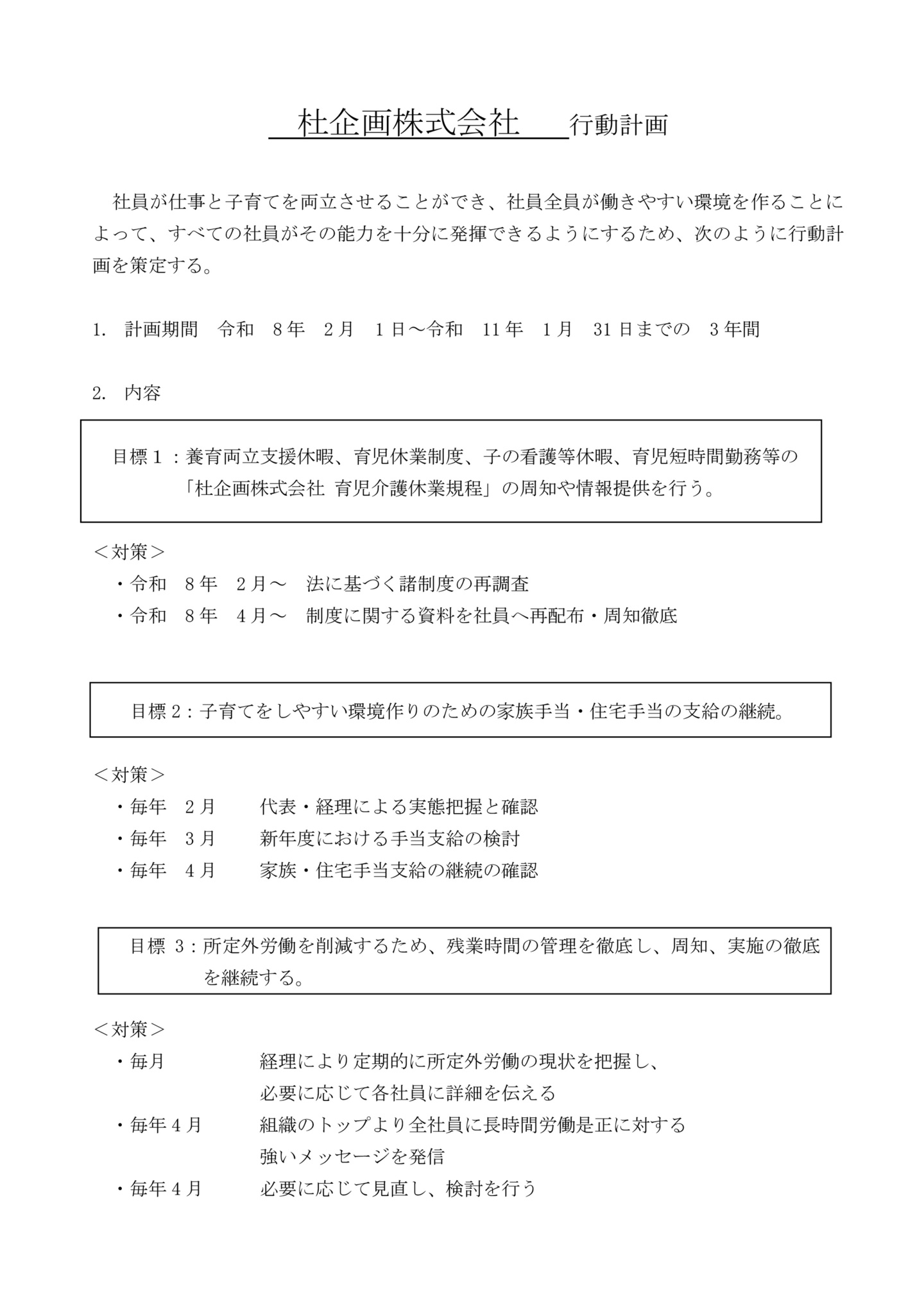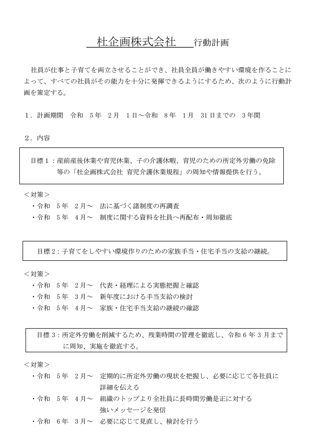 杜企画株式会社行動計画